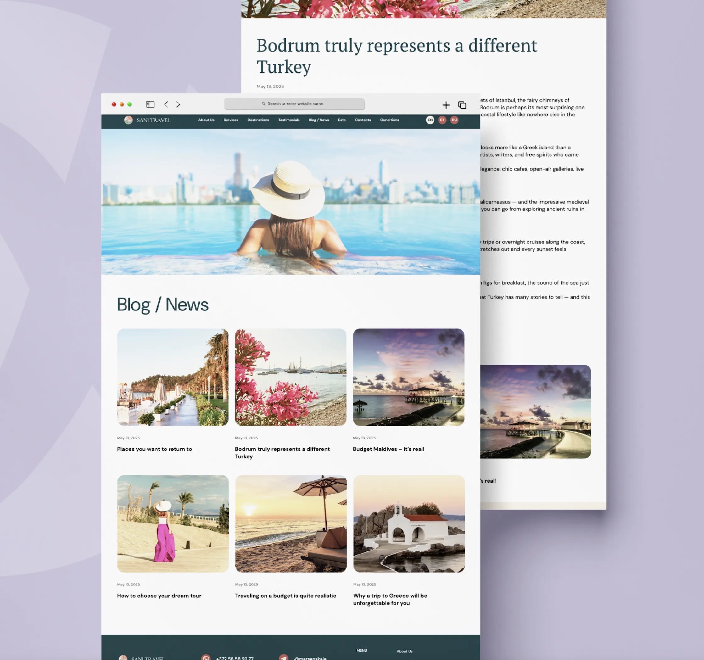 In 2025, we developed a website for a travel agency specializing in individual and group tours in Europe and Asia. The main task was to create a modern, intuitive, and aesthetic resource that reflects the atmosphere of travel and trust.